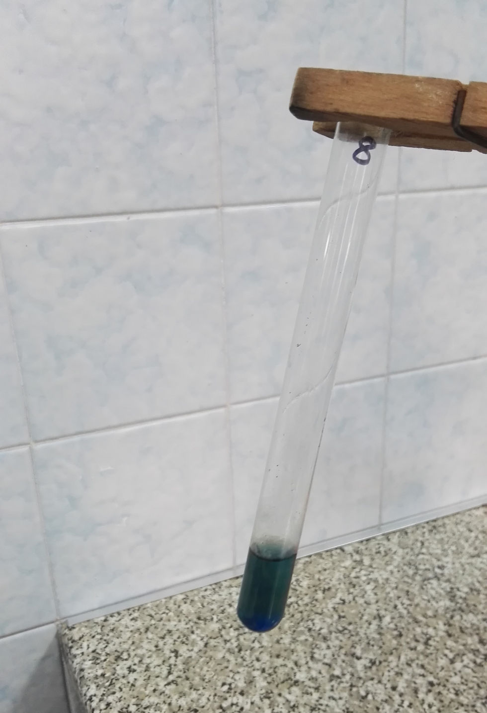 En el tubo 2 los que ocurre es que contiene sacarosa que no tiene poder reductor debido a su falta de carbono anomérico. Por ello la reacción no cambia de color y se mantiene con el color azul.